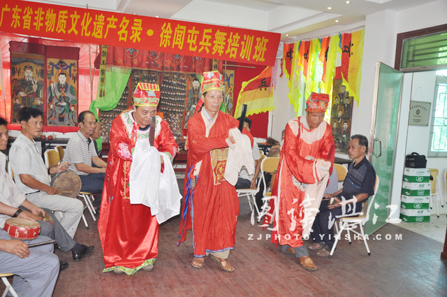 It is understood that the“station troops dance”is a spread unique Taoist folk dance of the Han nationality in Xuwen County, as well as a combination of local culture and Taoism. Its scope is very broad, such as material object,education, art, religion, ethics, customs and so on, everything all encompass. Over the years, the People's Government of Xuwen County has actively supported and helped to better inherit the intangible cultural heritage with national characteristics. On the basis of excavating, collecting and sorting, a series of feasible measures are adopted to make this endangered intangible cultural heritage project to be reborn and get an extension. The “station troops dance”was selected in the fourth batch of intangible cultural heritage list in Zhanjiang City in 2012, and selected in the fifth batch of intangible cultural heritage list in Guangdong Province in 2013. Farmer Lai Hong`e was listed as the fourth batch of Guangdong Province intangible cultural heritage list “Xuwenstation troops dance inheritor”. Xuwen County was one of the counties at the top of the provincial intangible cultural heritage list in terms of quantity.